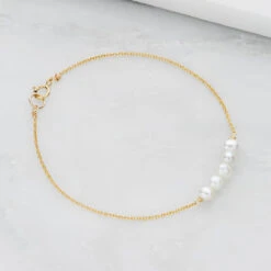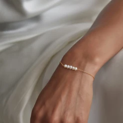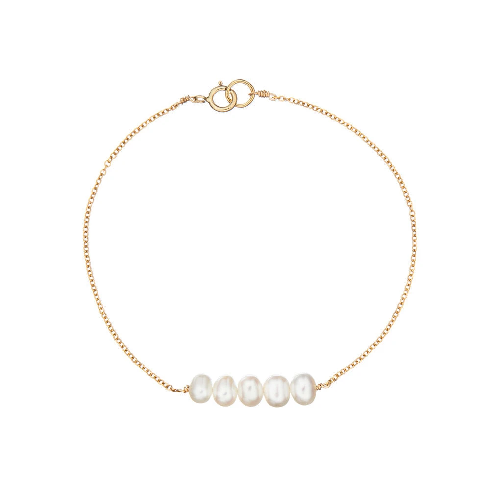 A delicate gold cluster pearl bracelet. The perfect pearl wedding jewellery for a bride or bridesmaid. Handmade in our London studio.Â