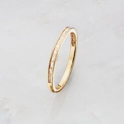 Our stunning 14ct. gold plated sterling silver baguette diamond style half eternity ring is a beautiful piece that will complement any outfit. Wear it solo and let it take centre stage or stack it with our other stunning styles.