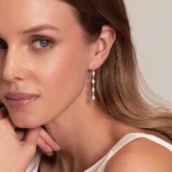 Our stylish, gold baguette diamond style huggie hoop earrings are designed to hug your earlobe and to be put on with ease. Small Huggie Hoop Earrings are the perfect everyday-wear and work with any outfit, from casual-wear to a proud bride wearing them on her wedding day.