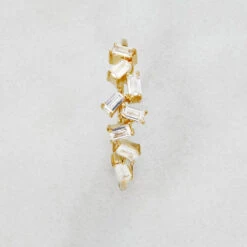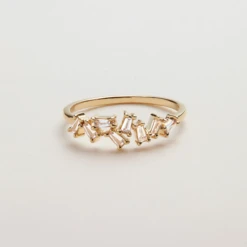 This gold baguette diamond style ring will complement any outfit and is the perfect piece to wear from day to night. Diamond style jagged rings add just the right amount of sparkle! Beautifully detailed, our diamond style ring features an uneven format to give the right amount of edge and style.