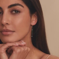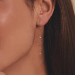 Our stunning gold diamond style drop satellite stud earrings are perfect for those wanting the threader look with the familiar comfort of stud earrings. These earrings feature a satellite chain with three crystal drops to add that extra sparkle to your wardrobe.