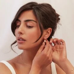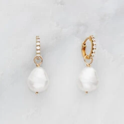 Our gold huggie pearl drop hoop earrings are the perfect gift for someone special. Our stunning diamond style huggie hoops are designed to delicately hug the earlobe and the pearls are removable to create a more every day look. This timeless design makes for the perfect accessory for any bride or bridesmaids on a wedding day.