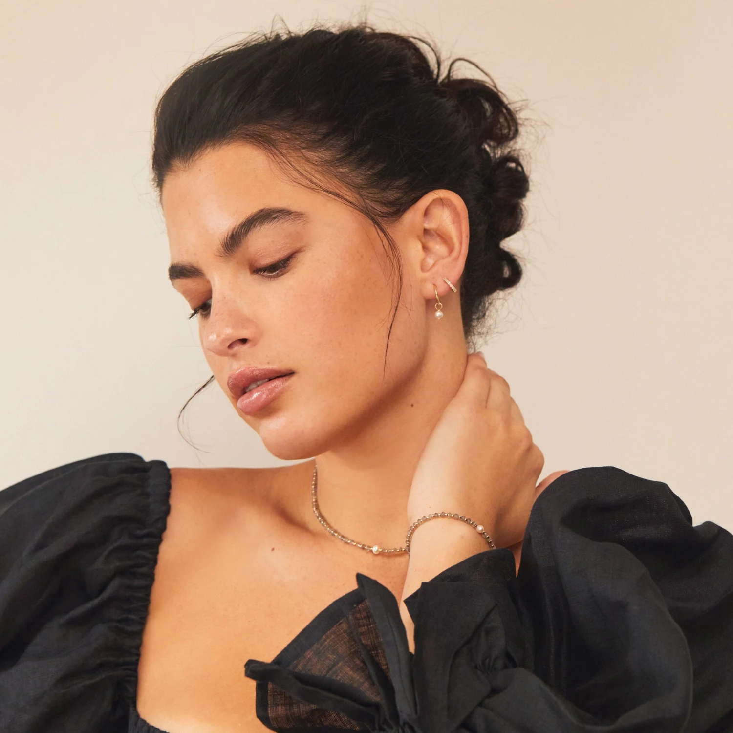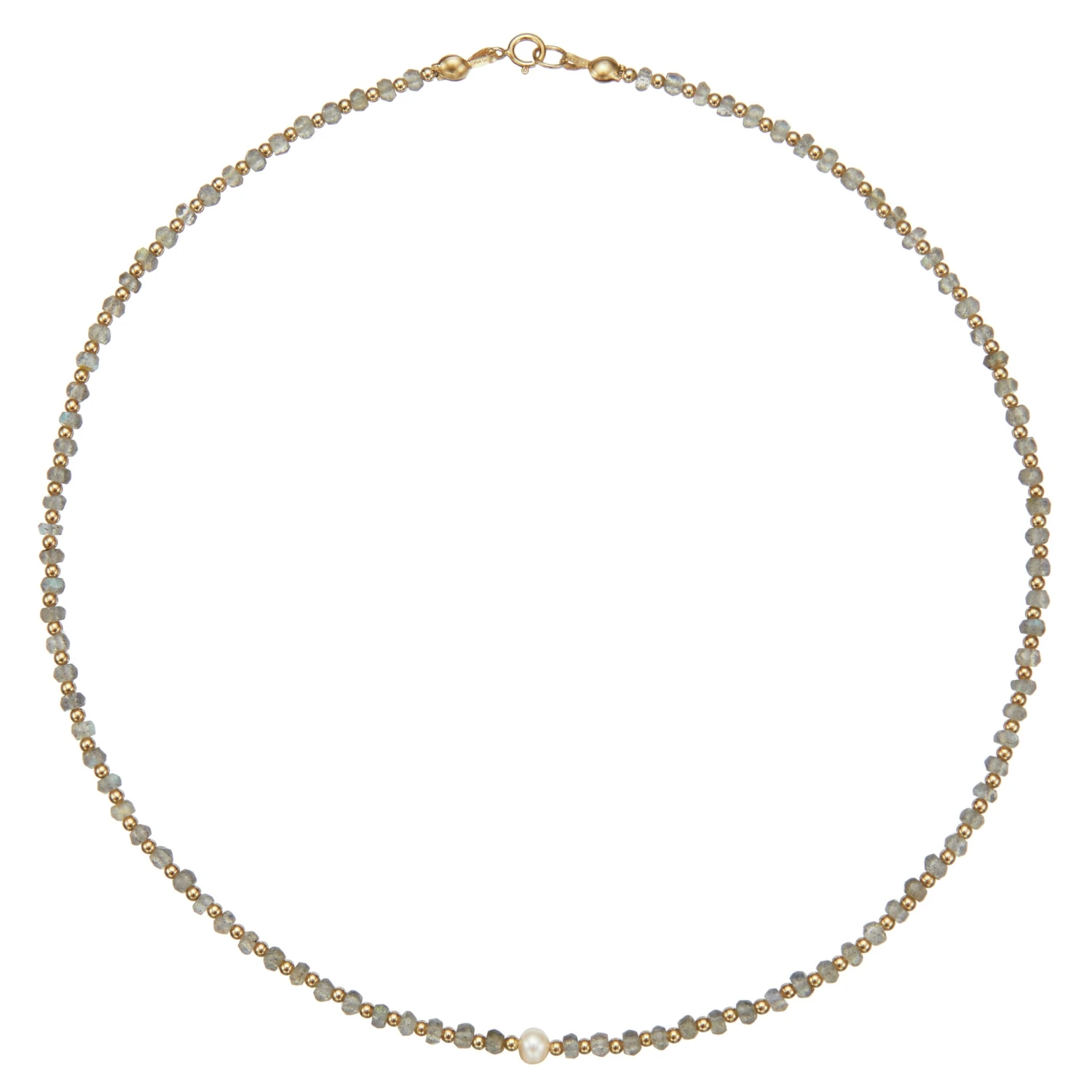 Hand beaded using chips of labradorite gemstone and gold filled beads, our gold Labradorite Gemstone Choker is the perfect gift for someone special. Wear alone or layer with your favourite necklaces for a statement look. Our gemstone choker is handmade with love in our London studio and features a genuine freshwater pearl.