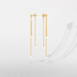 Our gold Layered Pearl Drop Earrings add a touch of class to any outfit. From a bride on her wedding day, to an evening out with friends, these earrings are a truly versatile piece. Our Layered Pearl Earrings are handcrafted with genuine freshwater pearls in our London studio.