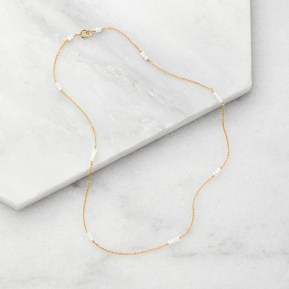 Our gold filled mini pearl choker is suitable for any occasion and ideal for layering. Handmade in our London studio, this delicate pearl choker is ethically sourced and produced. Perfect for weddings, our mini pearl choker is a beautiful accessory for any bride or her bridesmaids.