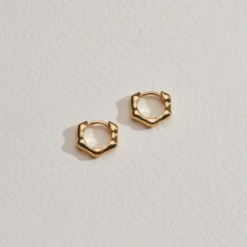 Our gold molten huggie hoop earrings are designed to gently hug the earlobe for ultimate comfort. Made of solid sterling silver and plated in 18ct gold, these huggie hoops are made to last. Wear them on their own or stacked with our other earrings for even more impact.