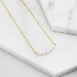 Our elegant gold pearl cluster necklaces are handmade with love in our London studio and are ethically sourced and produced.Β These pearls can be worn with almost any outfit and compliment bride or bridesmaids dresses perfectly at a wedding.