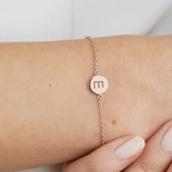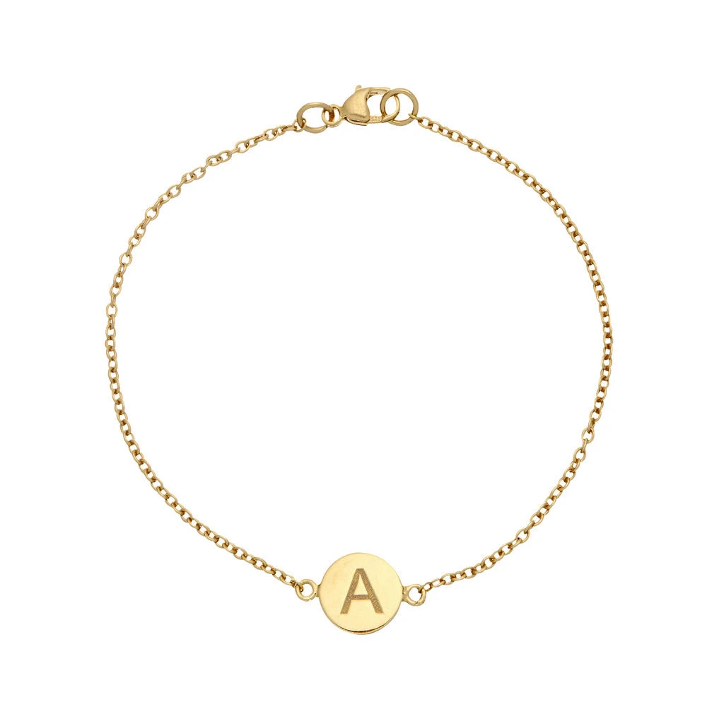 Our beautiful, gold personalised disc bracelet can be laser engraved to add a letter, special date, name or secret message on the front and reverse.