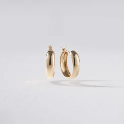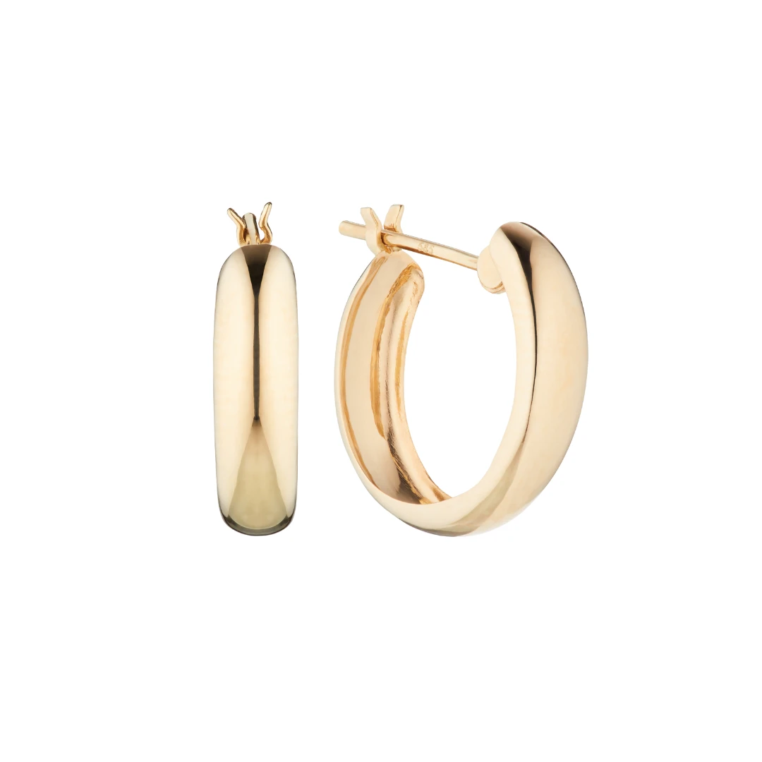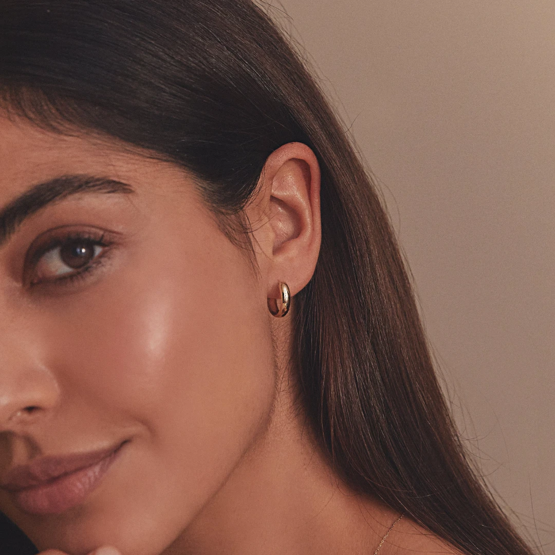 Our gold plain hoop earrings are a staple for any wardrobe. Their classic design allows for them to be paired with a range of styles and looks. Pair with our classic huggie hoop earrings.