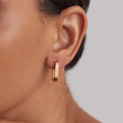 Our classic gold ribbed hoop earrings feature removable freshwater pearls to make them the perfect mix and match accessory. These stylish hoops are hinged to be put on with ease. Perfect for any occasion, to complement any outfit, from work attire to a bride’s wedding dress.