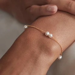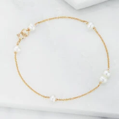 This delicate freshwater pearl bracelet is an elegant jewellery gift that will work with any outfit. Often used as wedding jewellery to compliment a brides wedding dress. Handmade with love in our London studio, this beautiful gold, solid sterling silver or rose gold pearl bracelet is ethically sourced and produced.Â