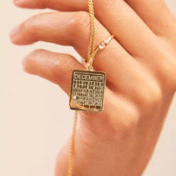 Our beautiful gold special date calendar necklace is set with your choice of gemstone to mark your memorable day. This one of a kind sentimental piece comes complete with a ‘find your meaning’ gemstone card and luxury gift box.