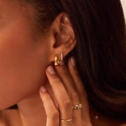 These gold thick squared hoop earrings are perfect for wearing on their own or stacked with our other earrings. Solid sterling silver, plated in 18ct gold, these squared edge hoop earrings are made to last.