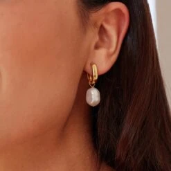 These gold thick squared hoop earrings with a pearl drop are perfect for wearing on their own or stacked with our other earrings. You are able to detach the pearls for a completely different look. Ideal for a summer wedding and can be worn by the bride or bridesmaids to complement any outfit. Solid sterling silver plated in 18ct gold and features a genuine freshwater pearl, these pearl drop earrings are made to last.