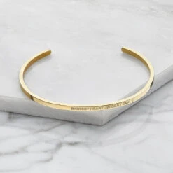 This personalised gold thin engraved bangle is the perfect piece of jewellery to be worn every day. A sentimental gift for any woman. Crafted in Hatton Garden, London, it can be laser engraved to add a letter, special date, name or secret message on the front and inside. We laser engrave our personalised bangles for depth and ultra-precision, lasting a lifetime.