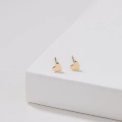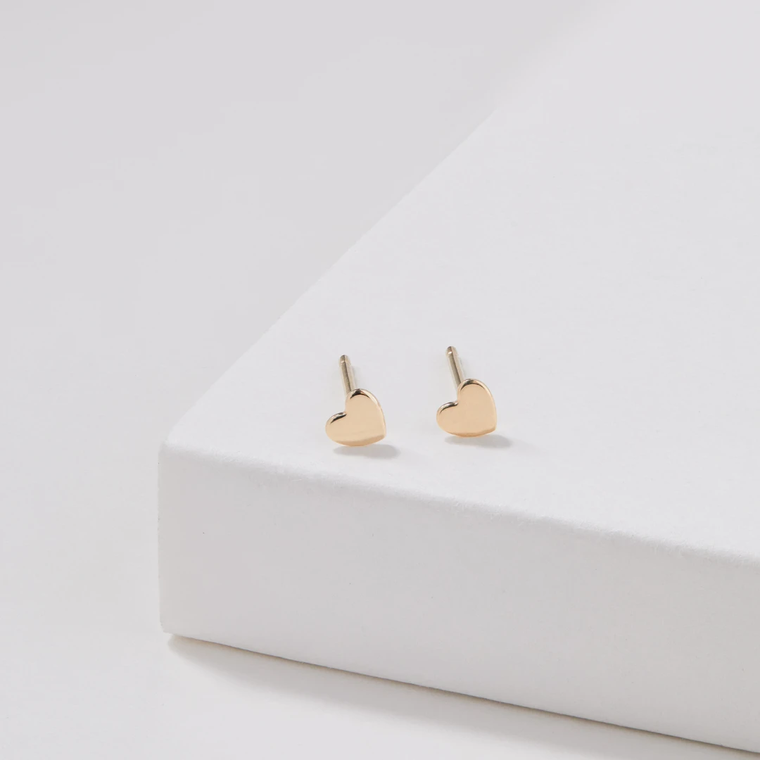 Our classic gold tiny heart stud earrings are a stylish addition to any outfit. Wear with our tiny heart necklace and bracelet to complete the set. These stud earrings can be stacked with our other stud earrings or paired with our feature huggie hoops.