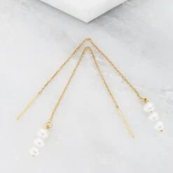 A beautiful pair of rose gold freshwater pearl cluster ear threaders. These earrings make a perfect gift for any woman and really bring a classic piece of jewellery into the modern day.
