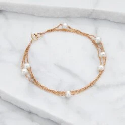 This stunning handmade rose gold freshwater layered pearl bracelet is a beautiful jewellery gift for a bride or bridesmaid to wear on a wedding day. These pearl bracelets also compliment pretty much any outfit. Handmade with love in our London studio.