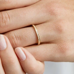 Beautifully detailed, our diamond style eternity ring features baguette crystals in a row.