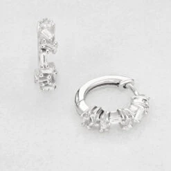 Our stylish, baguette diamond style huggie hoop earrings are designed to hug your earlobe and to be put on with ease. Huggie hoop earrings are the perfect everyday-wear and work with any outfit, from casual-wear to a proud bride wearing them on her wedding day.