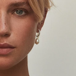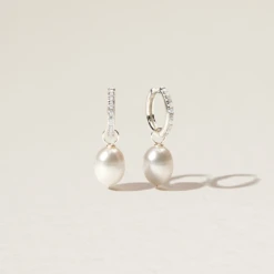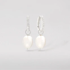 Our silver diamond style large pearl drop earrings feature removable pearls to dress your look up or down depending on the occasion. These pearl drop earrings are the perfect addition to a wedding dress for the bride to wear on her big day, or, for her bridesmaids. These hoops are hinged to be put on with ease.