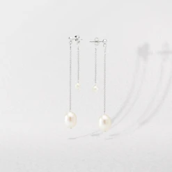 Our silver Layered Pearl Earrings add a touch of class to any outfit. From a bride on her wedding day, to an evening out with friends, these earrings are a truly versatile piece. Our Layered Pearl Earrings are handcrafted with genuine freshwater pearls in our London studio.