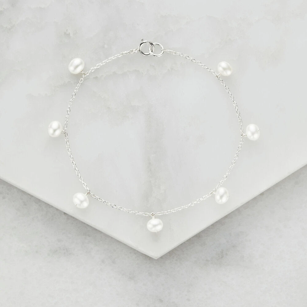 Our stunning solid sterling silver pearl drop bracelet is a show-stopping addition to any outfit. Perfect for weddings, our bracelet is an elegant accessory for any bride or her bridesmaids. Our delicate bracelet is handmade in our London studio using genuine freshwater pearls.