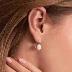 Our silver pearl drop hook earrings are a contemporary twist on the classic pearl earrings design. These freshwater pearls add a touch of elegance to any outfit and are the perfect gift for that someone special.
