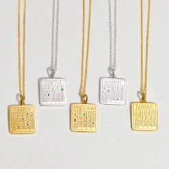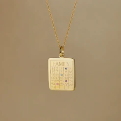 Our beautiful silver family calendar necklace is set with your choice of gemstones to mark the dates that mean the most to you.