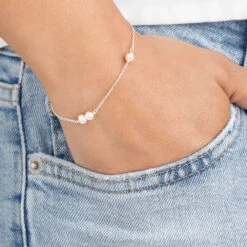 This delicate freshwater pearl bracelet is an elegant jewellery gift that will work with any outfit. Often used as wedding jewellery to compliment a brides wedding dress. Handmade with love in our London studio, this beautiful gold, solid sterling silver or rose pearl bracelet is ethically sourced and produced.Â