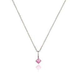 Our gorgeous silver small birthstone pendant necklace is the perfect birthday gift for that someone special. Featuring a delicate gemstone of your choice. This necklace can be worn on its own or layered with our initial necklaces for your own personalised look. This necklace is available in 16inch, 18inch or 20inch lengths. Add an additional gemstone charm to create a sentimental piece.Â