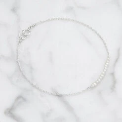 This handmade solid sterling silver small pearl cluster bracelet is a beautiful jewellery gift for her. Handmade with love in our London studio, this beautiful pearl cluster bracelet is ethically sourced and produced.Β The delicate pearl cluster bracelet complements any outfit and is the perfect jewellery gift for a bride or bridesmaids to wear to a wedding.