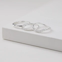 Our stunning silver wave diamond style ring is a classic piece to compliment any outfit. Wear it solo or stack it with other ring styles. Our detailed wave ring features a row of pavé set crystals.