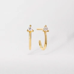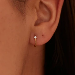 These utterly stunning solid gold genuine diamond lobe hoop studs are the ultimate in understated luxury. Featuring a beautiful genuine diamond and a loop that gently hugs the earlobe around the front, our stud earrings give just the right amount of sparkle and complement any outfit, from work attire to a brides wedding dress.
