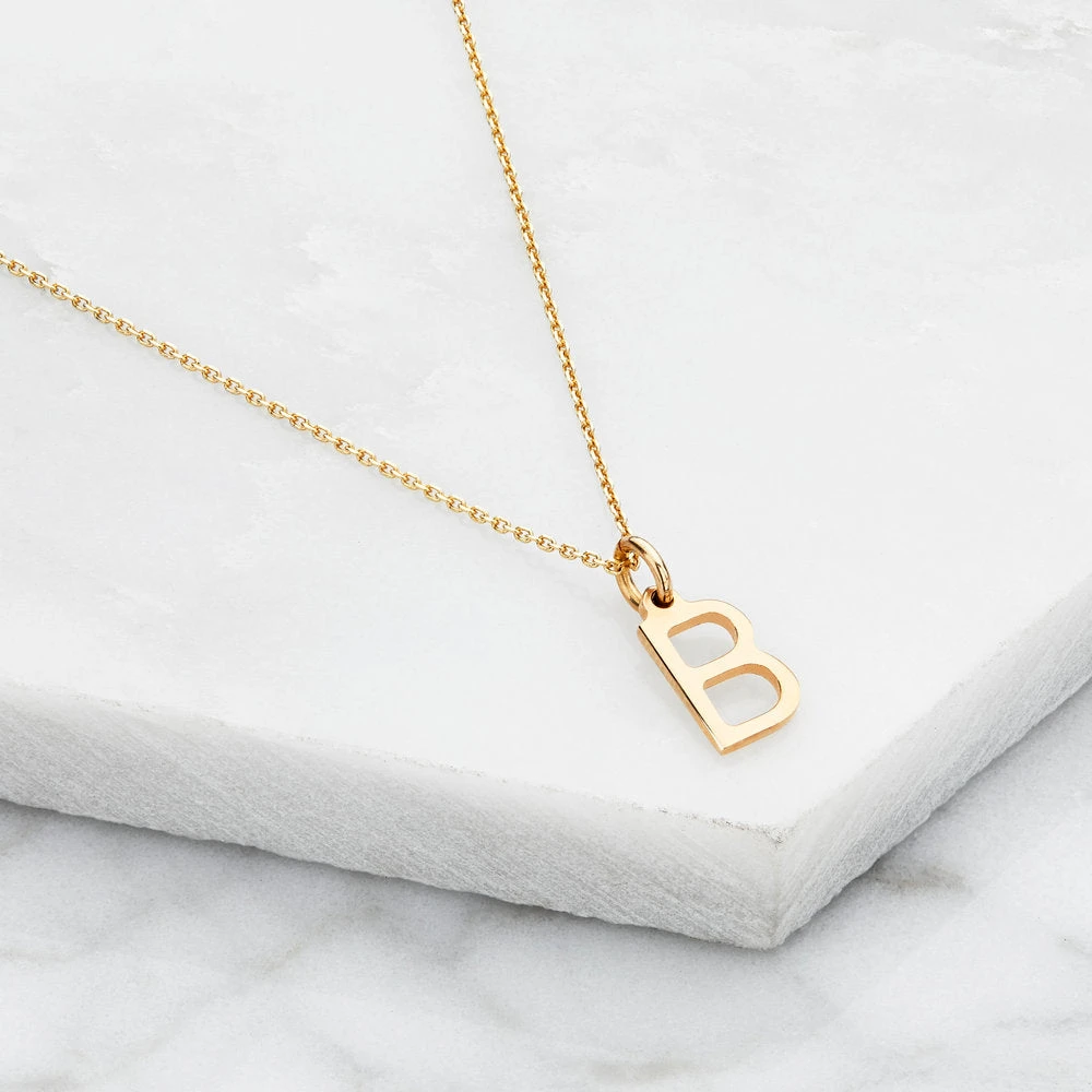 Our 9ct gold letter necklaces have chain and finish options