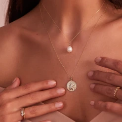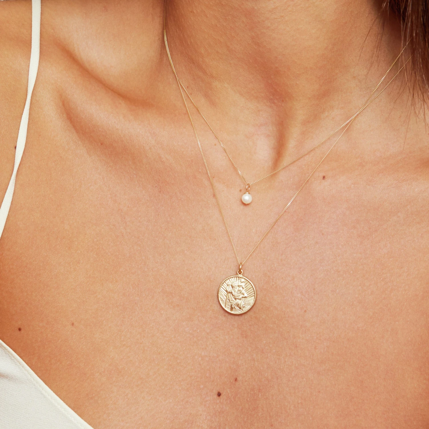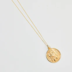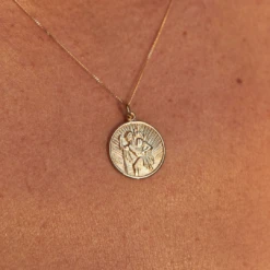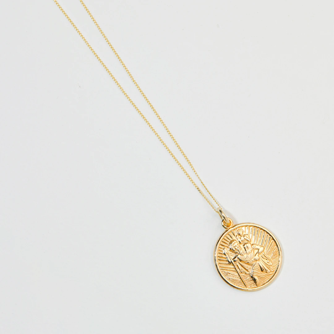 Our solid gold Round St Christopher Necklace is ideal for everyday wear and is perfect for layering. The stunning pendant features St Christopher, the patron saint of travellers and offers protection to anyone who wears it. Make it extra special with our in house engraving. Engrave up to twenty characters on the reverse and choose from five different font options shown in the font selection image. Please note depending on engraving length characters may be shown on up to 3 lines.