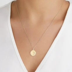 Our beautiful solid gold St Christopher medallion necklace is ideal for everyday wear and is perfect for layering. The octagonal pendant features St Christopher, the patron saint of travellers and offers protection to anyone who wears it. Make it extra special with our in house engraving. Engrave up to twenty characters on the reverse and choose from five different font options shown in the font selection image. Please note depending on engraving length characters may be shown on up to 3 lines.