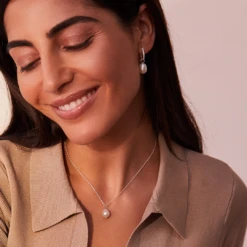 Our solid white gold genuine diamond style large pearl drop earrings feature removable pearls to dress your look up or down depending on the occasion. These versatile hoops will complement a wedding dress on a brides big day or can be worn by the bridesmaids too. These hoops are hinged to be put on with ease.
