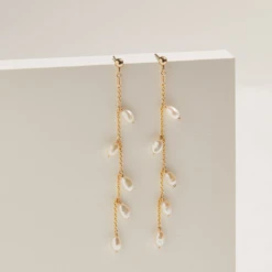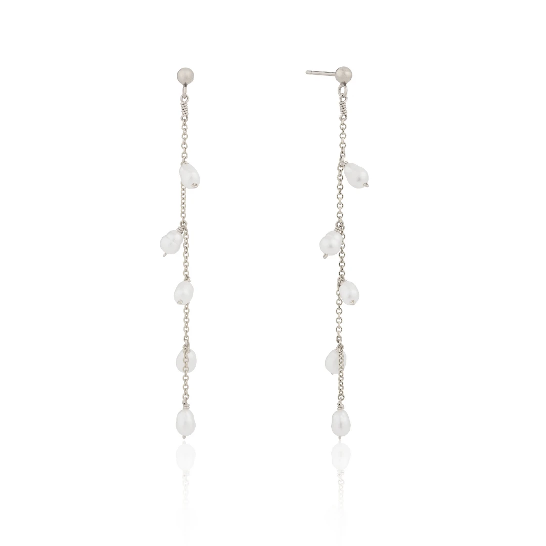 Solid White Gold Seed Pearl Drop Earrings