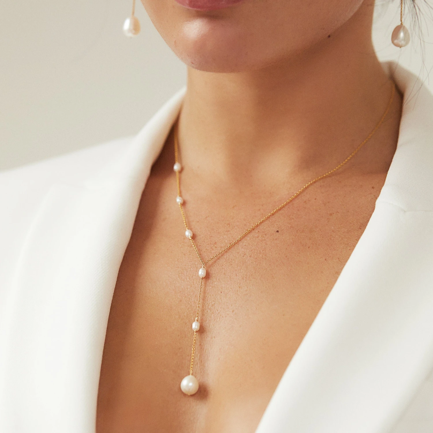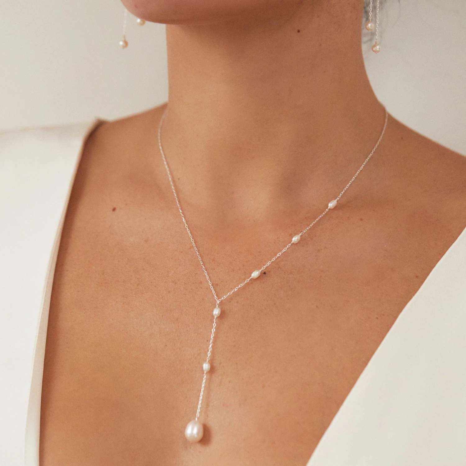 Our solid white gold Seed Pearl Lariat Necklace is the perfect accessory for any elegant bride. Featuring our large and seed freshwater pearls, this lariat is handmade with love in our London studio. With its eye-catching design, the Seed Pearl Lariat is a beautiful gift for someone special.